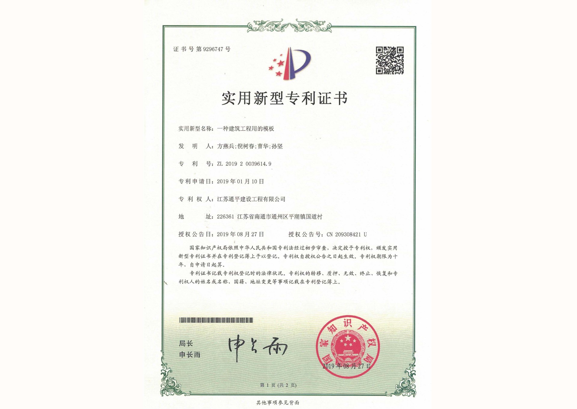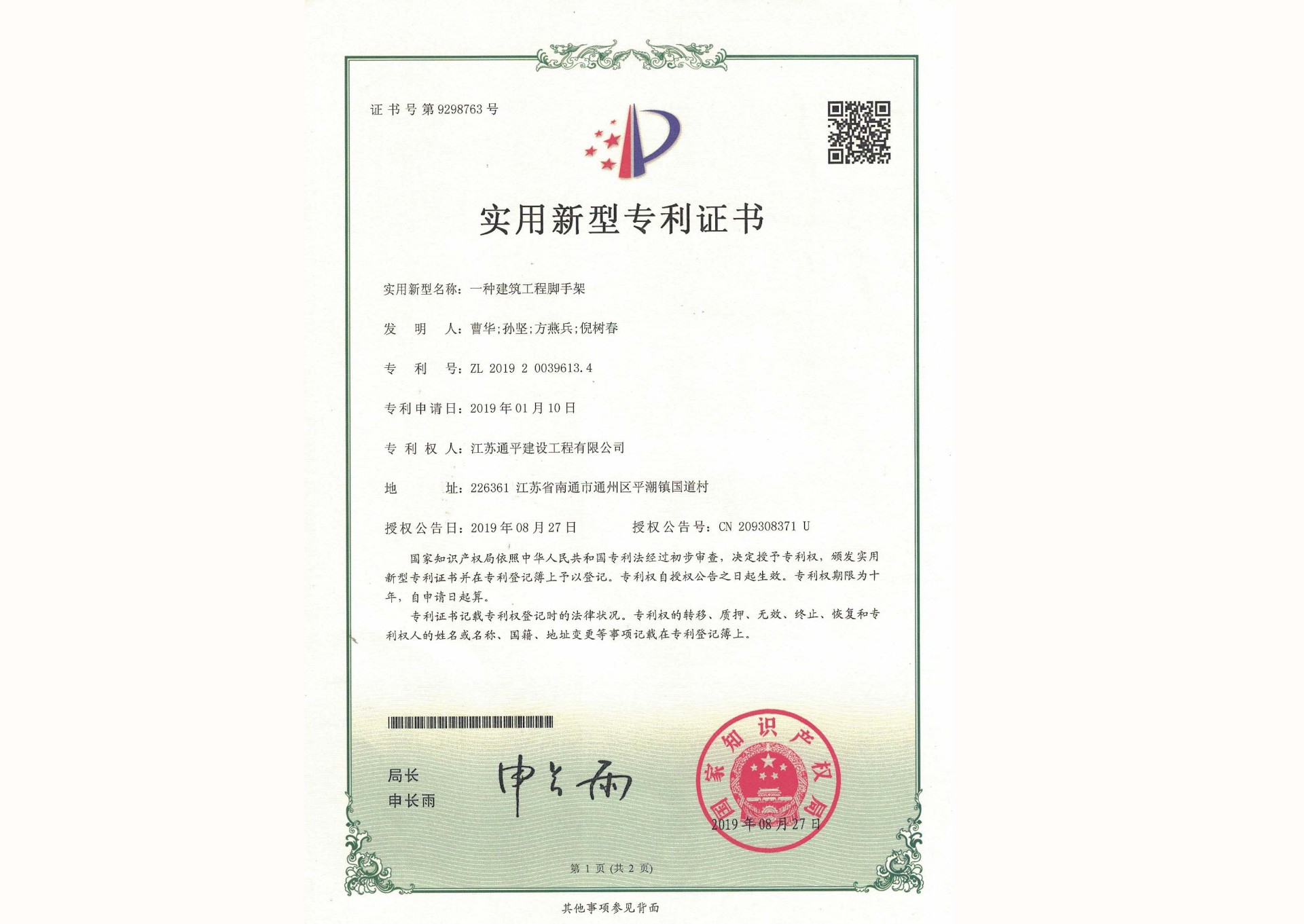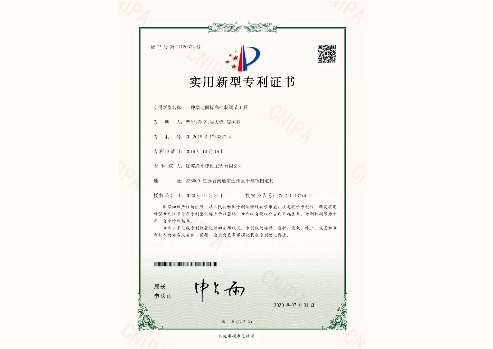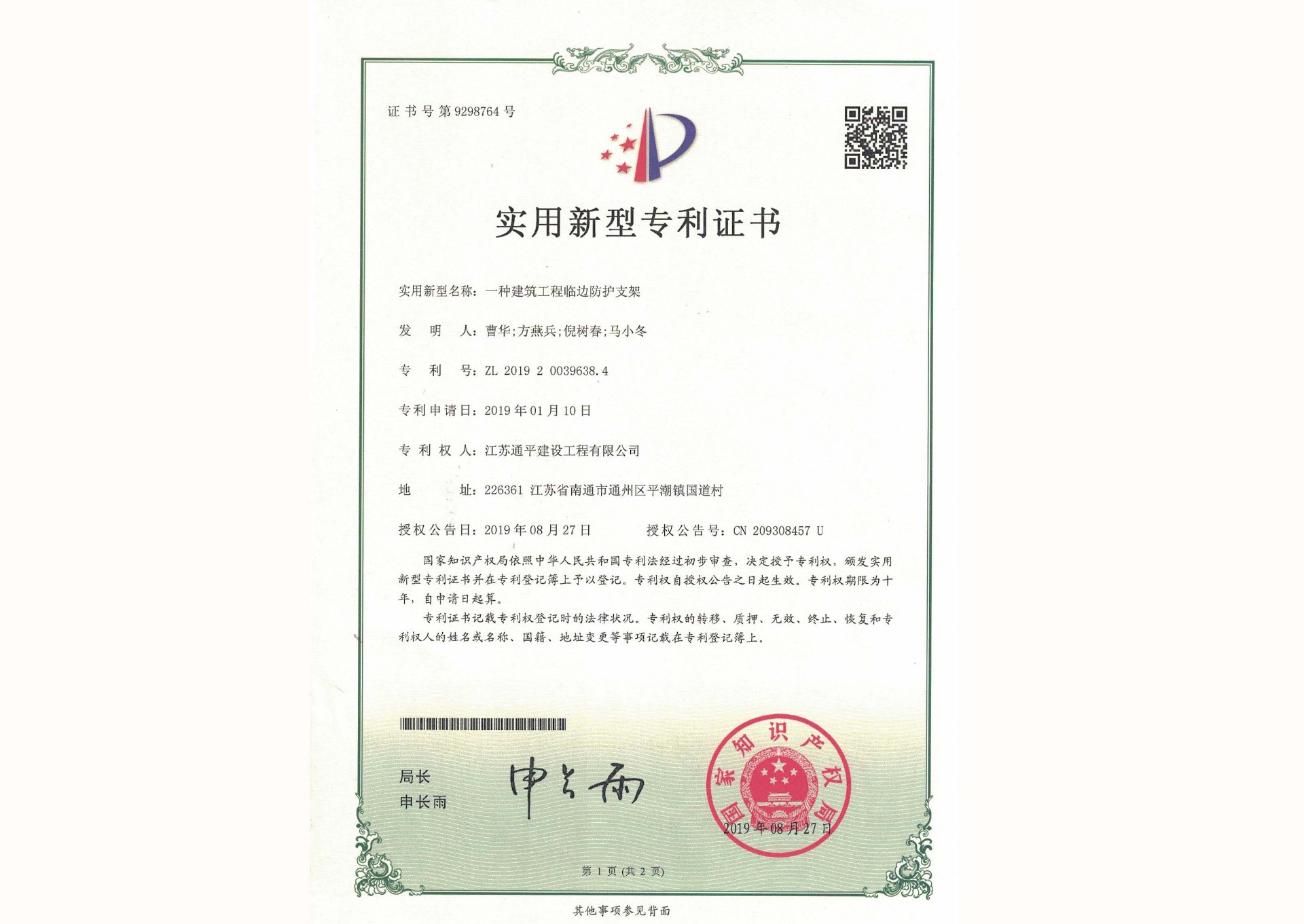 获奖证书